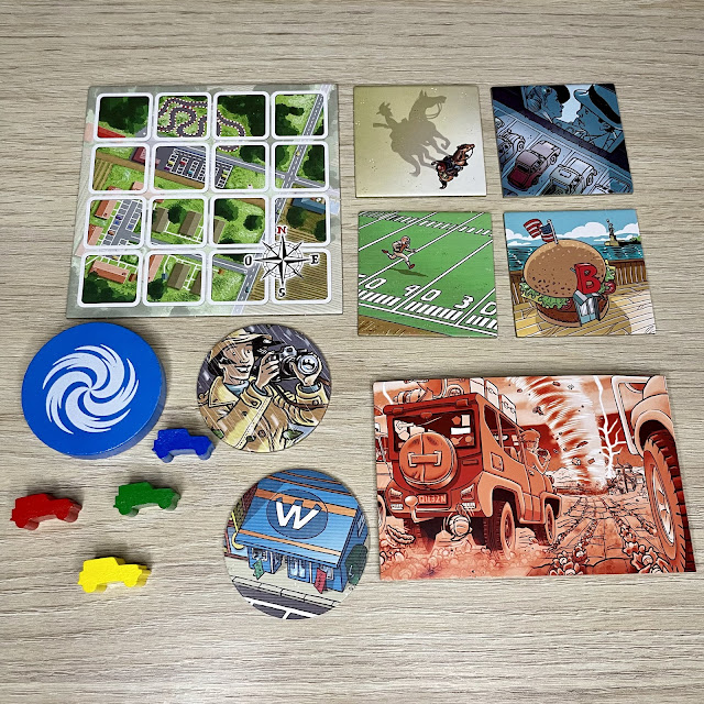 - 18 cartas de equipamiento, 10 de tornado y 32 de fotografía.